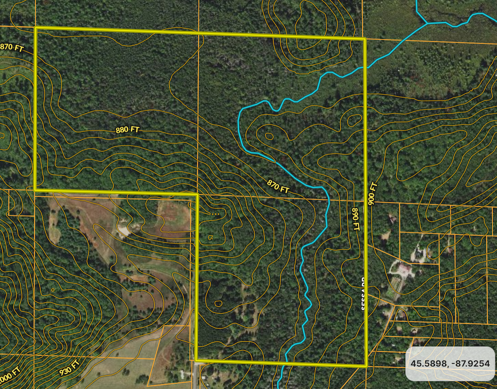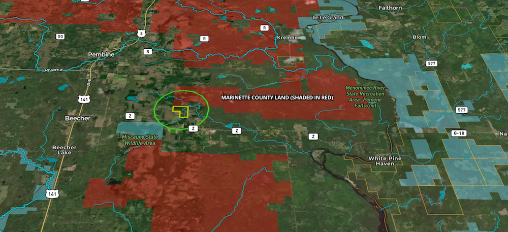 - A huge block of Marinette County Forest is attached to the north edge of this property