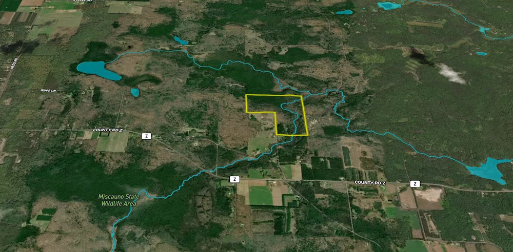 - The south branch of Miscauno River meanders through the property