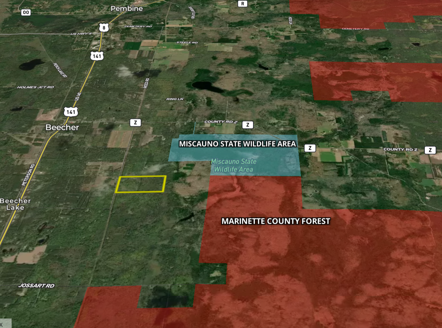 - A very large block of State and County land is just 1/2 mile east