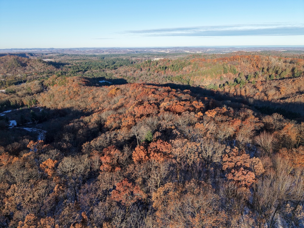 - Hardwood ridges roll through the property