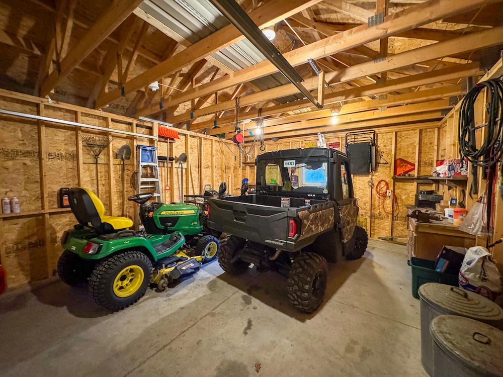 - One-car garage for storing equipment