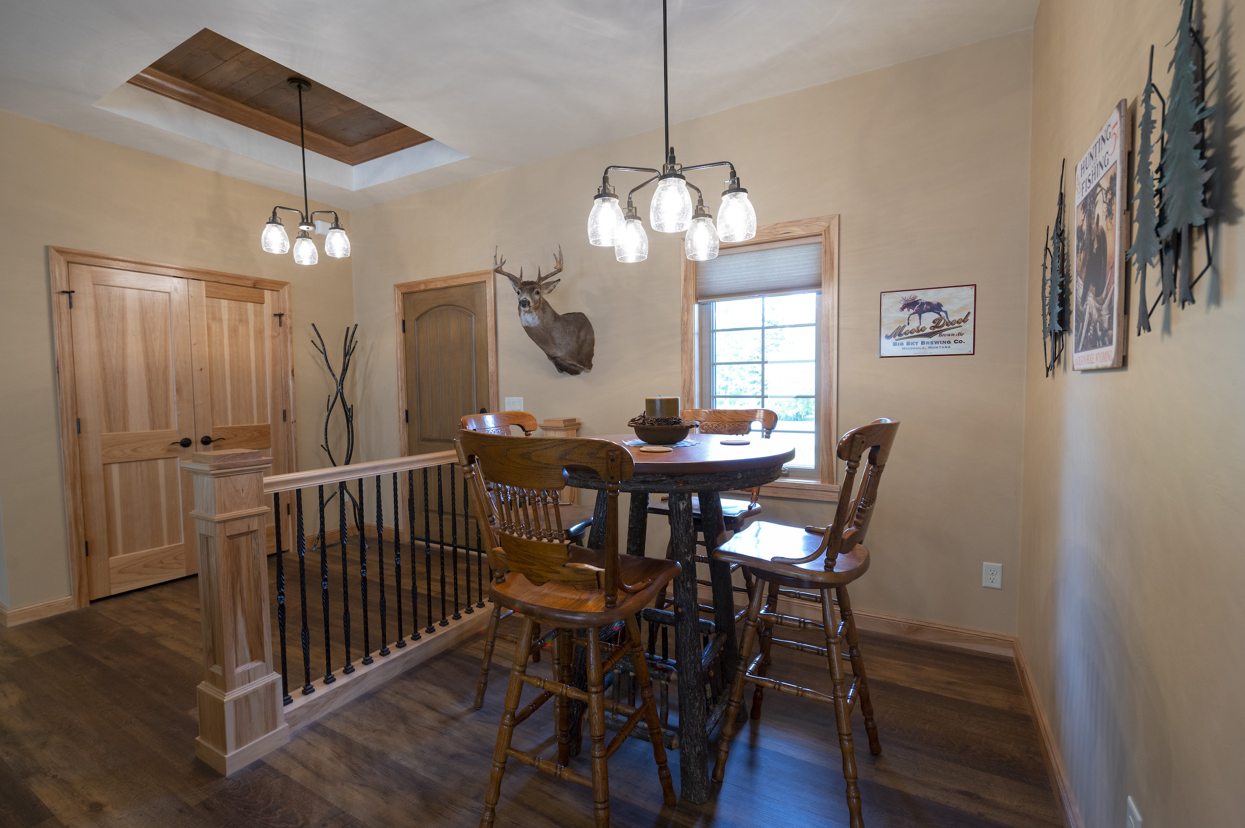 This fabulous custom home was built on a great hunting property that has continued to produce good bucks since it was built in 2017. An impressive entrance is showcased by full veneer Big Timber Stone from Montana Rockworks. As soon as you enter the foyer you are immediately impressed with quality workmanship, beautiful woodwork, gorgeous hickory cabinets and a design that anyone would love. The comfortable and spacious family room includes a beautiful gas fireplace showcased by Moose Mountain Stone, again from Montana, which is located right across from the Pub Table Room. The 2 guest bedrooms are large and well-appointed, the Master Bedroom measures approximately 272 square feet and is attached to the Master bath measuring over 160 square feet. Floors in the Master Bath are heated. There is a freestanding soaking tub for those wanting to relax or a grand walk-in shower for others.