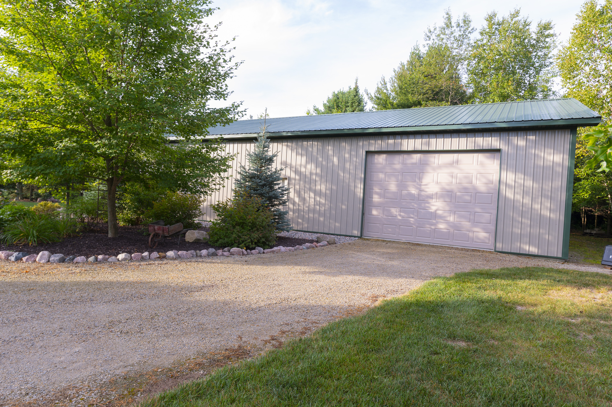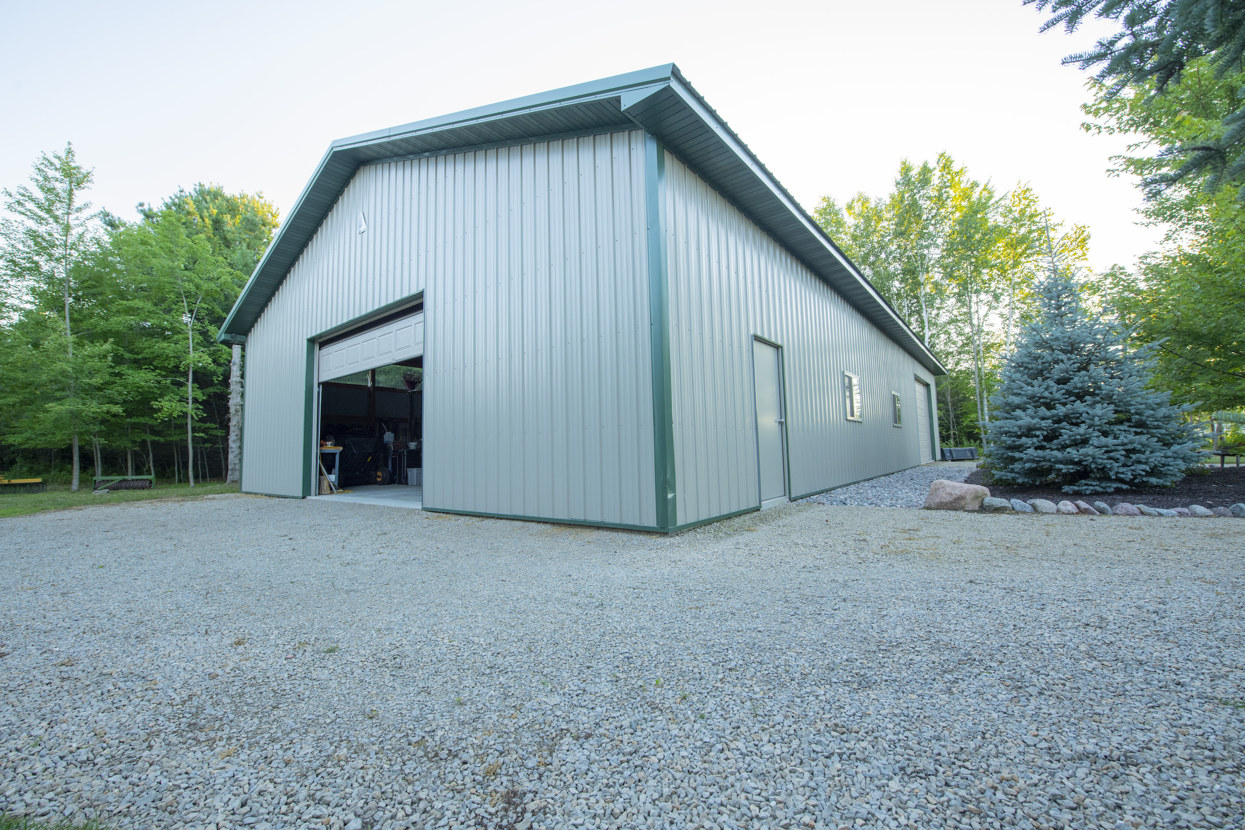 Your tractor, boat, travel trailer or motorhome will be well protected by the 40’ X 70’ metal storage shed located just over 100 feet away. It is easy to move items around since there are large overhead doors located on two sides of the building. The overhead doors are 12 feet high and certainly wide enough to accommodate large equipment. It has electricity, polycarbonate eave lights and a concrete floor.