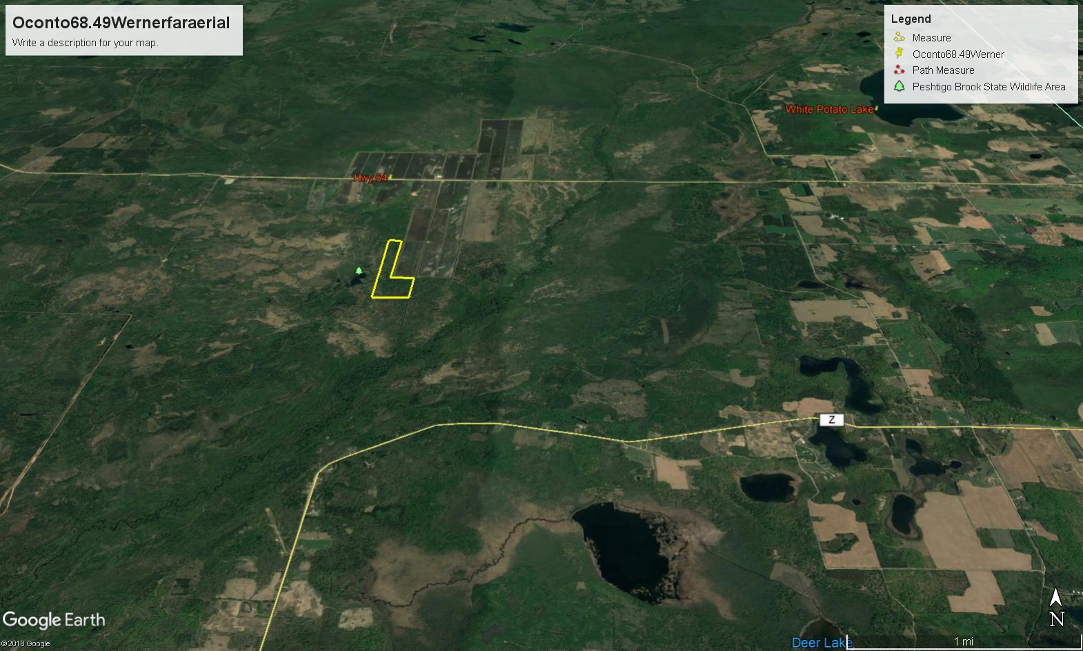 Located south of Hwy 64 with farm fields on the north and east side and public land on the west and south makes this a terrific property capable of growing big deer. High and low ground and a good mix of trees at various ages provide wonderful habitat. Within a few miles radius, there are over 9,000 acres of public land to hunt, at your disposal. The Peshtigo Brook State Wildlife Area borders the west side. The hunting has been fantastic for deer, bear, and turkey. The neighboring farmer uses a high fence to prevent deer from grazing on his planted fields, which creates a border and a number of pinch points on the property. Bedding grounds are found on and at the edges of the property and the sign is great. This property is serviced by a legal easement that comes with the property so you never have to worry about not having access to the property. There are several great locations to install and plant food plots to keep the deer even closer. The damage to the forest that was sustained in the July storm has now been cleaned up and the property is looking great. I can only imagine the hunting potential of this property over the next few years as the new growth creates an entirely new environment, creating more bedding ground and producing tremendous food sources. Since the property is located almost a mile off Hwy 64 there is no traffic to bother the deer, they feel at home and comfortable all year long. Any lack of success when hunting on this property will most likely happen because you fell asleep on your stand. This is a hunting property and priced very well. Give us a call and walk the property to find out what great hunting is like at a reasonable cost. For the most concise description of this property please be sure to contact the listing agent. Look forward to hearing from you.