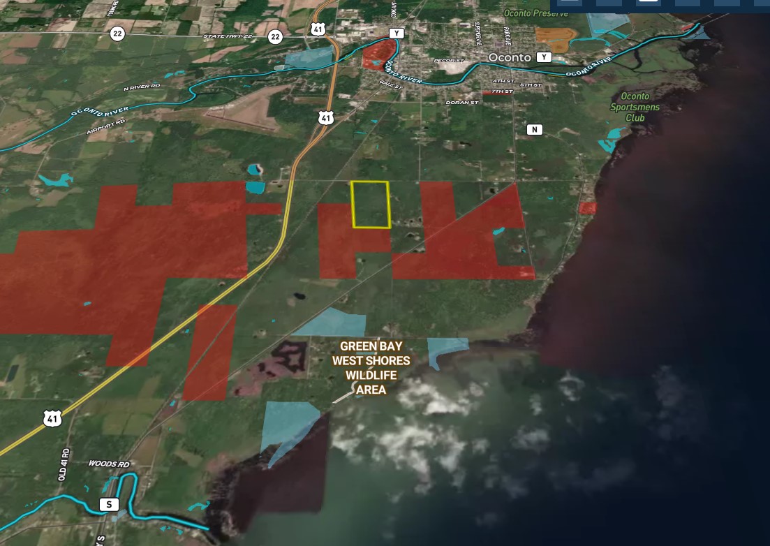 Build a home or cabin on a great hunting property located just west of Lake Michigan and 1 ½ miles from Oconto. The famous Oconto River is located just over a mile to the north, and when the walleyes are running, you are close to lots of fast action and a number of boat landings. To make it even more attractive, Oconto County Forest borders the south 40 on two sides. Breakwater Park Boat Ramp is found on the east side of Oconto and is capable of handling very large vessels as well as small boats. This land was made for hunting, with enough high ground to give a hunting crew the area they need to spread out and enough lowland to hold a good number of deer. A few elevated blinds are already in place and are positioned to provide short and long-distance opportunities. Trails provide access to much of the property, and the quiet area is made up of thick heavy cover, great for holding mature bucks.