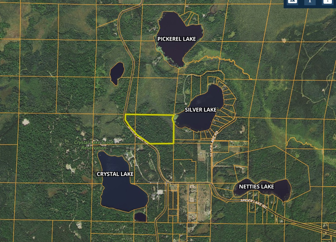 The northeast corner of this property includes approximately 275 feet of shoreline on Silver Lake, known for Northern Pike, Walleye, Largemouth Bass, and Panfish. Grand white pines are found throughout the property along with a good mix of northland species such as white birch, maple, oak, and aspen. There is good deer sign throughout the property, as evidenced by well-worn trails. Most of the parcel consists of loamy sand, the reason that it drains quite well and grows trees to be strong and tall. Gaining access to Silver Lake, 38 +/- acres of fishing fun, would most likely be done by constructing a walkway approximately 200 feet in length across the wetland area that separates the high ground from the lake’s edge. If your plans include building a home or cabin this parcel should do a great job of allowing you the peace that the Northwoods is known for. The snowmobile trail is just down the road and the roads are in fantastic condition and well maintained all year long. For the best description of what this property has to offer be sure to contact Terry Patrick, the listing agent.
