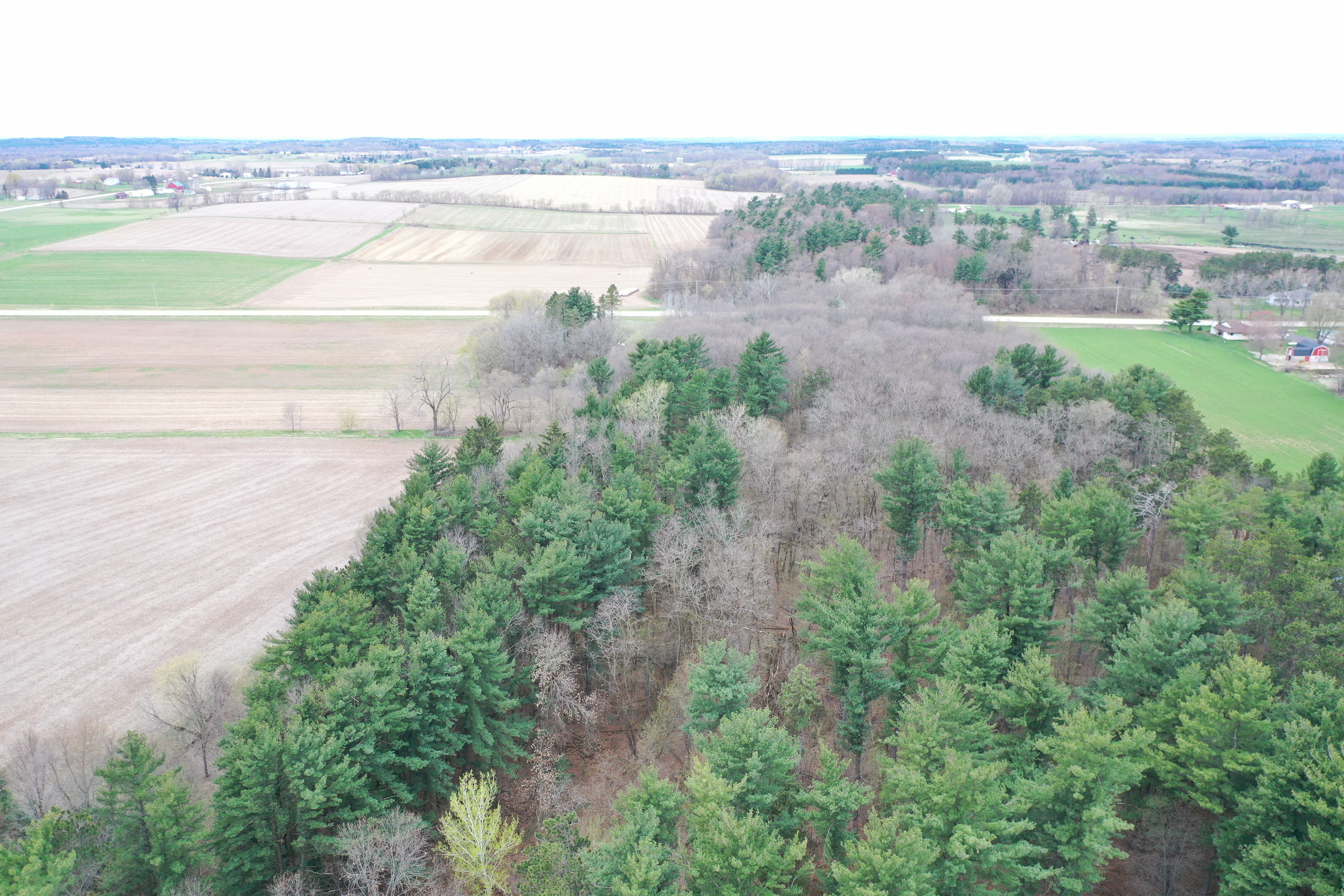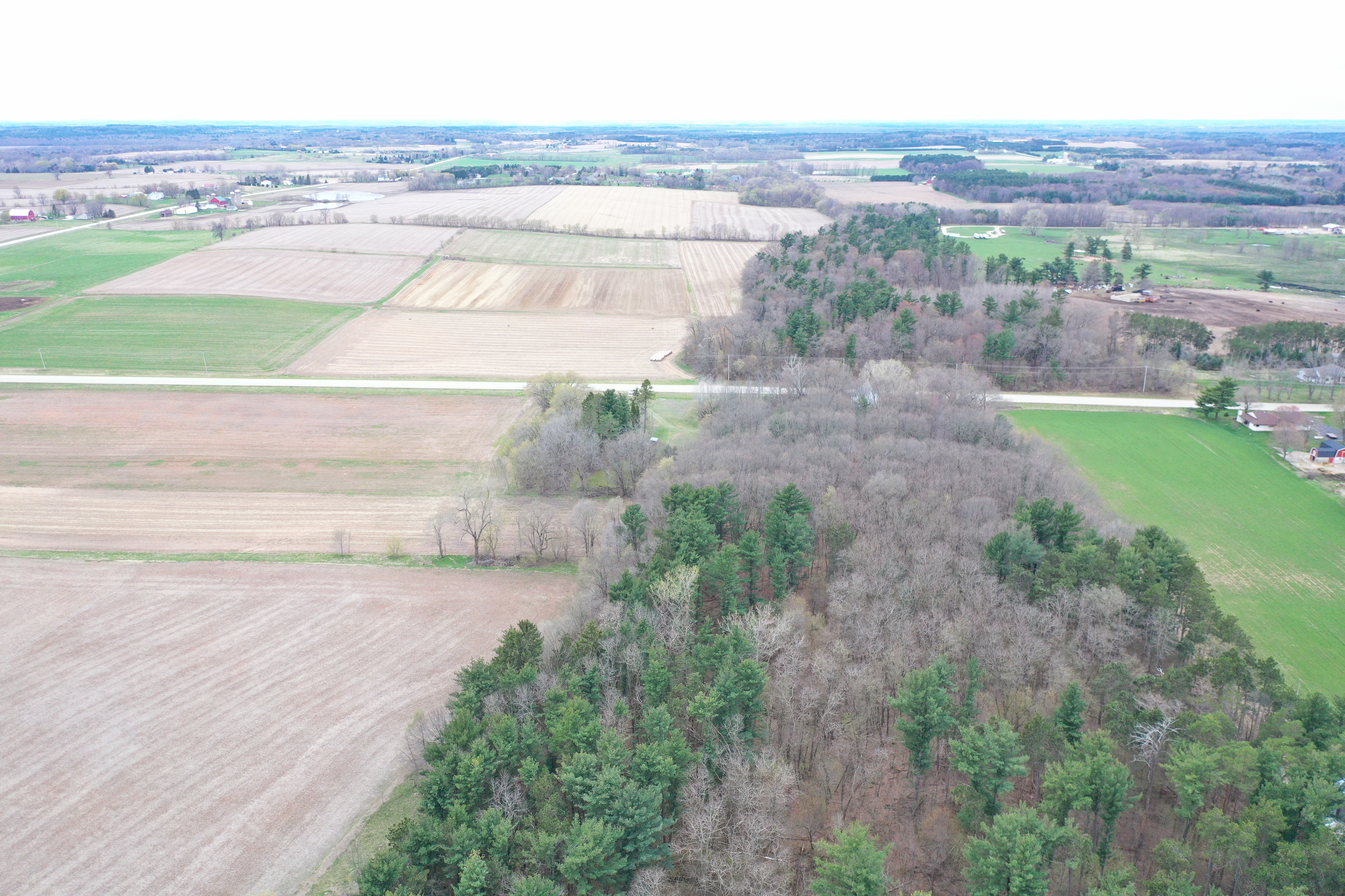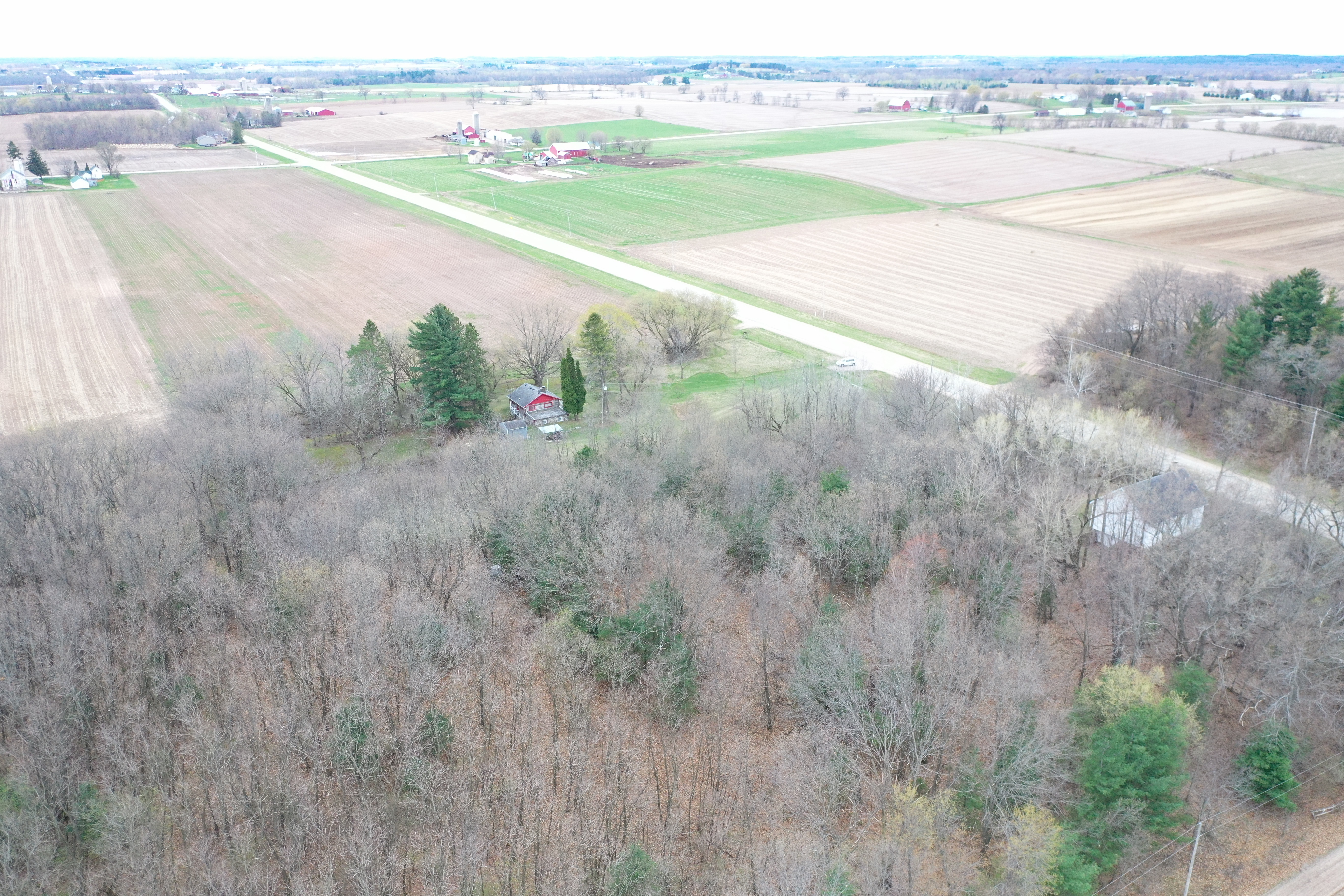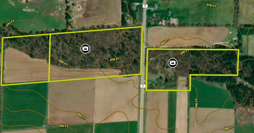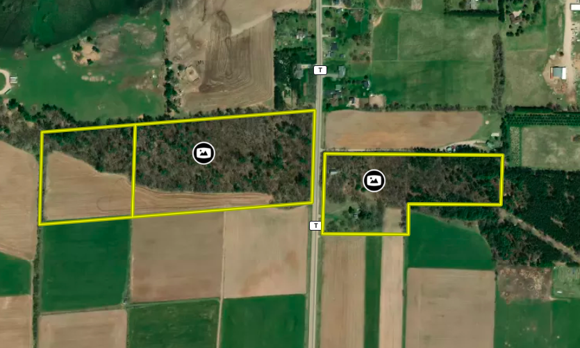 The sprawling acreage features a mix of productive timber, oak, maple, and white pine being the most common. This creates a diverse and beautiful landscape that is home to a healthy herd of deer, turkey, and other wildlife. From a deer hunting perspective, the property offers the perfect funnel of rolling timber for animals to travel east and west on a regular basis. Neighboring ag fields provide abundant food sources for all the local wildlife. There are just under 30 acres on the west side of the road, with 8 plus being tillable, and approximately 13 mainly wooded acres on the east side with a cabin and old schoolhouse. There are no known wetlands on this property. The acreage is mostly wooded with approximately 8-9 ac of productive tillable ground that would be excellent for food plots, income via cash rent to a local farmer, or turnkey build site possibilities. The county road dividing the property and tax parcels naturally opens a lot of options for a future owner for hunting, building, or developing the acreage.