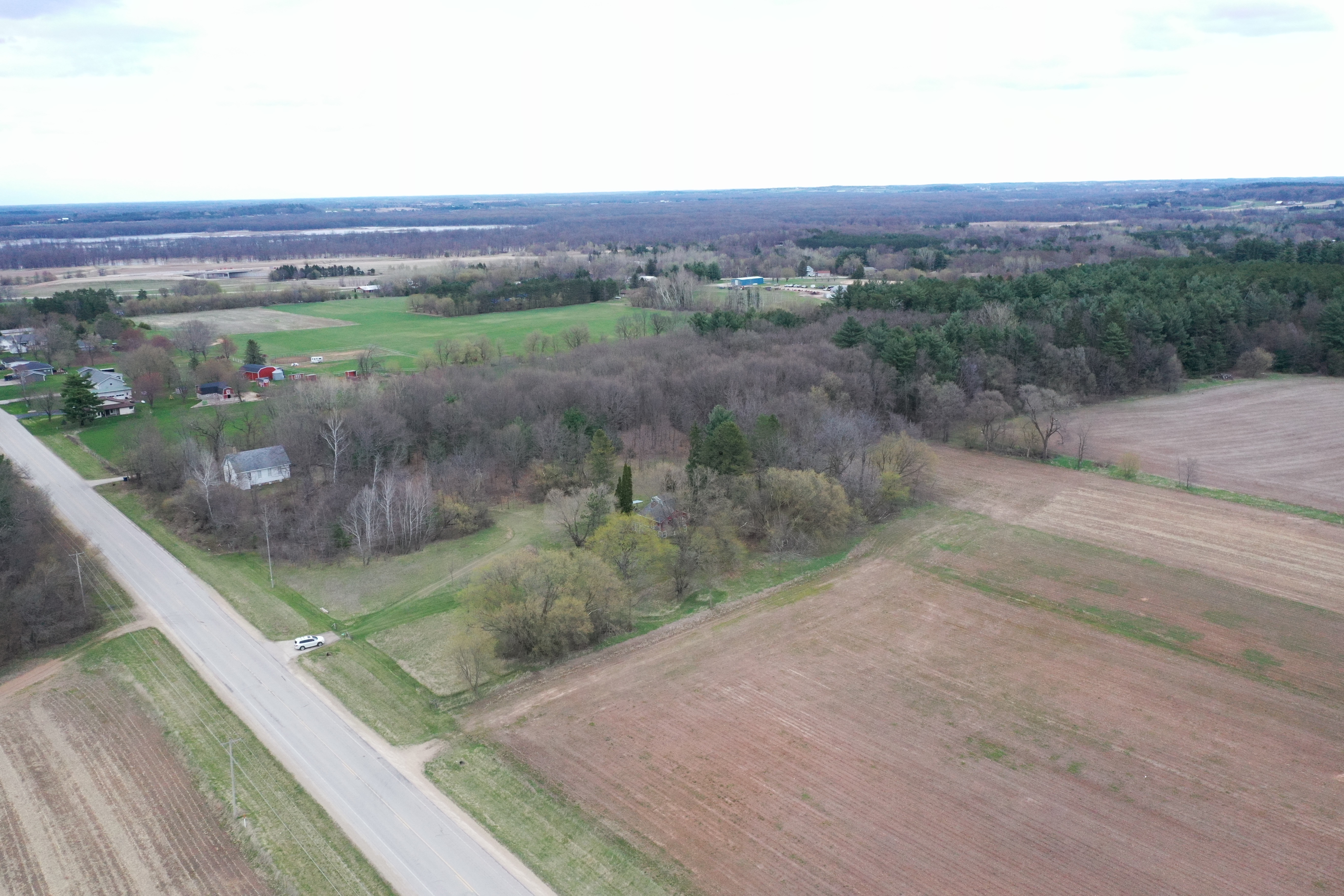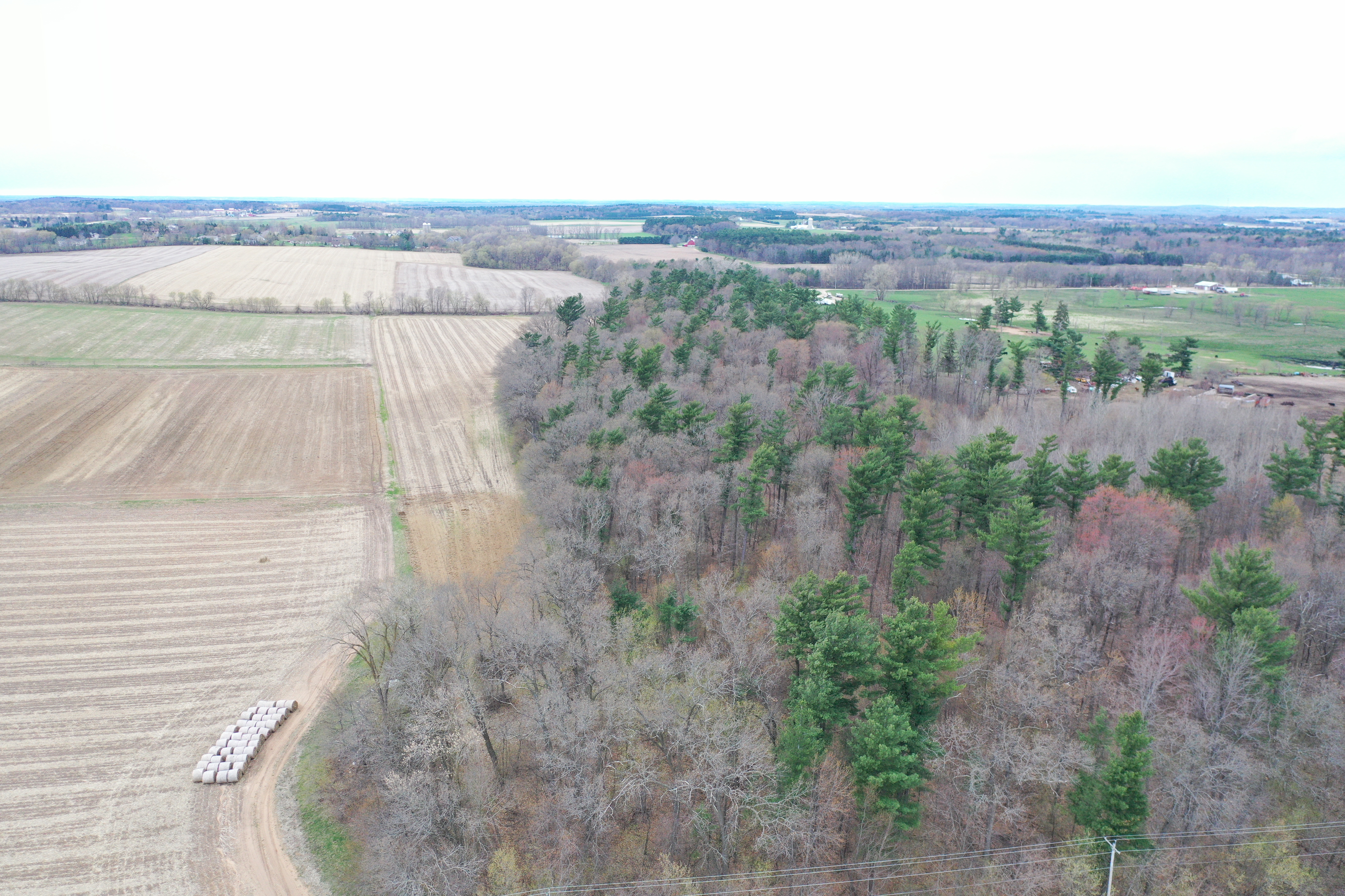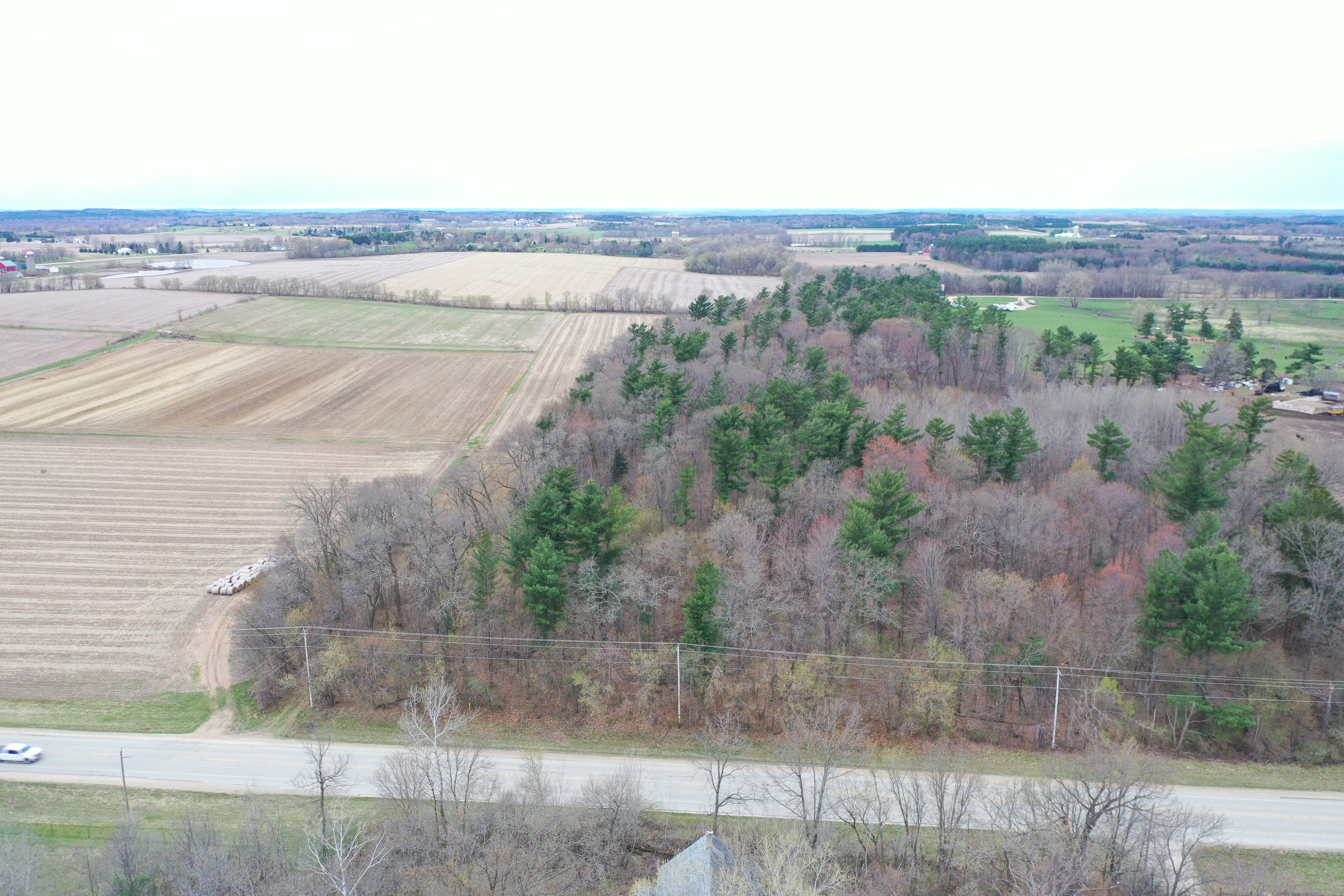 The sprawling acreage features a mix of productive timber, oak, maple, and white pine being the most common. This creates a diverse and beautiful landscape that is home to a healthy herd of deer, turkey, and other wildlife. From a deer hunting perspective, the property offers the perfect funnel of rolling timber for animals to travel east and west on a regular basis. Neighboring ag fields provide abundant food sources for all the local wildlife. There are just under 30 acres on the west side of the road, with 8 plus being tillable, and approximately 13 mainly wooded acres on the east side with a cabin and old schoolhouse. There are no known wetlands on this property. The acreage is mostly wooded with approximately 8-9 ac of productive tillable ground that would be excellent for food plots, income via cash rent to a local farmer, or turnkey build site possibilities. The county road dividing the property and tax parcels naturally opens a lot of options for a future owner for hunting, building, or developing the acreage.