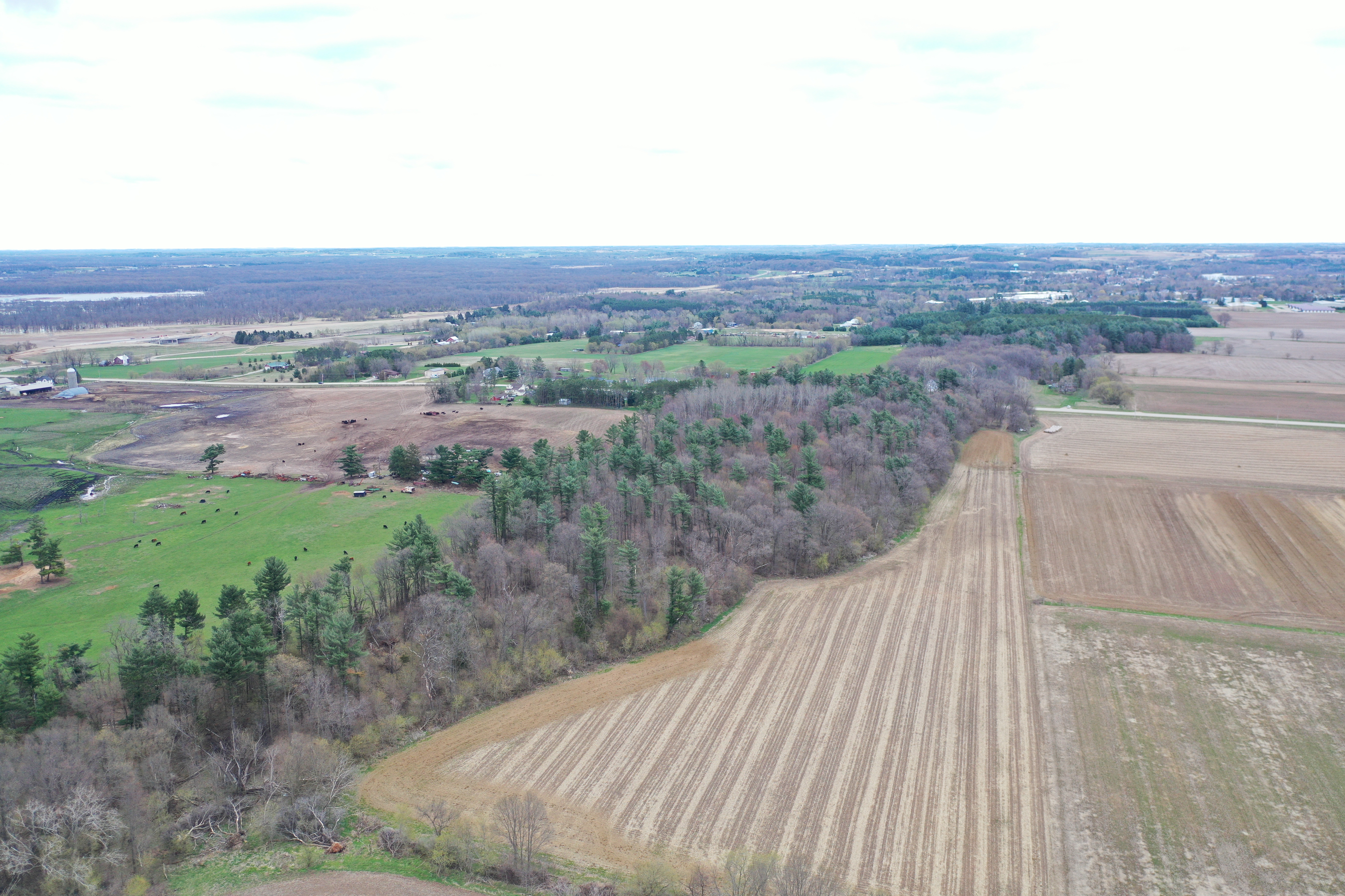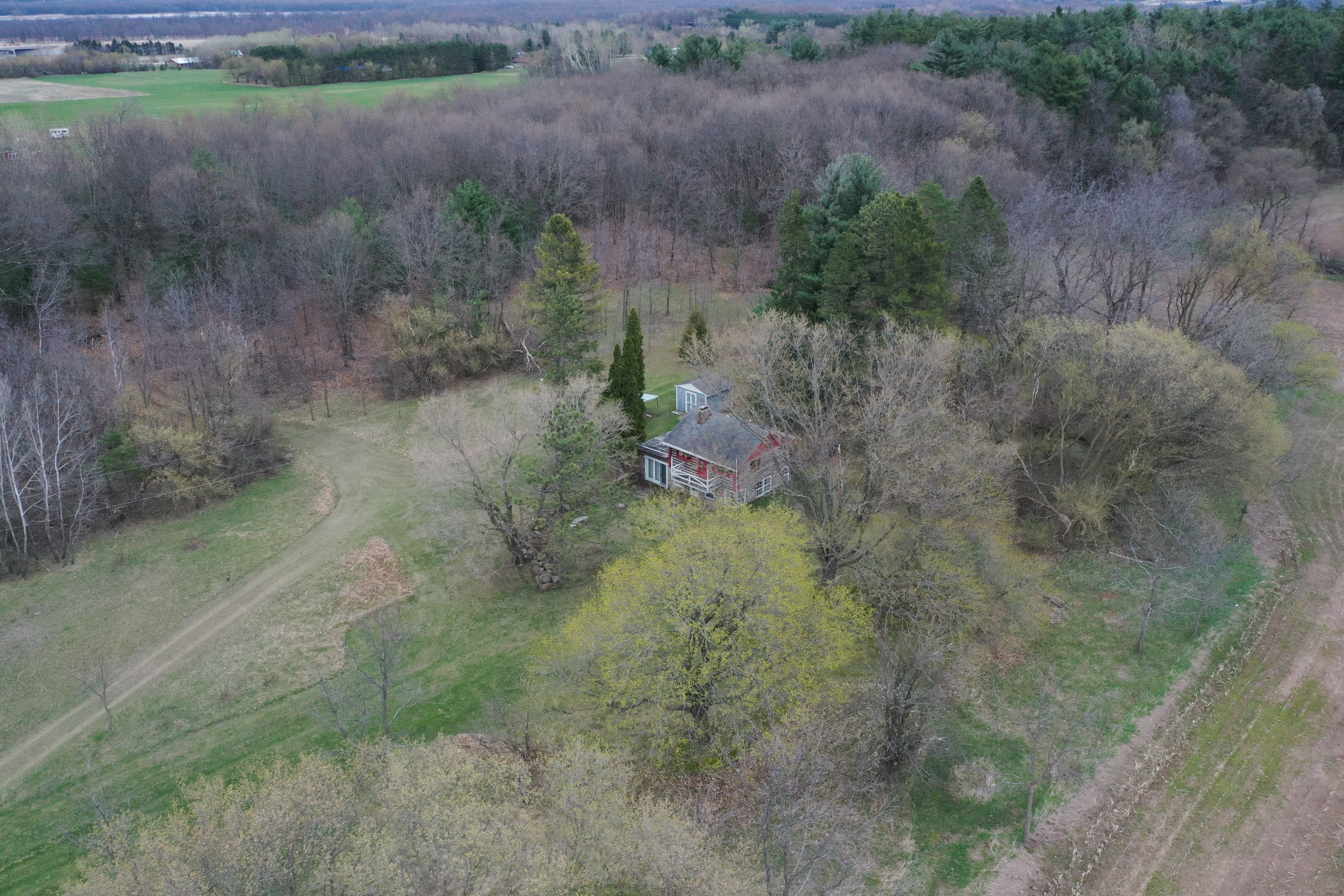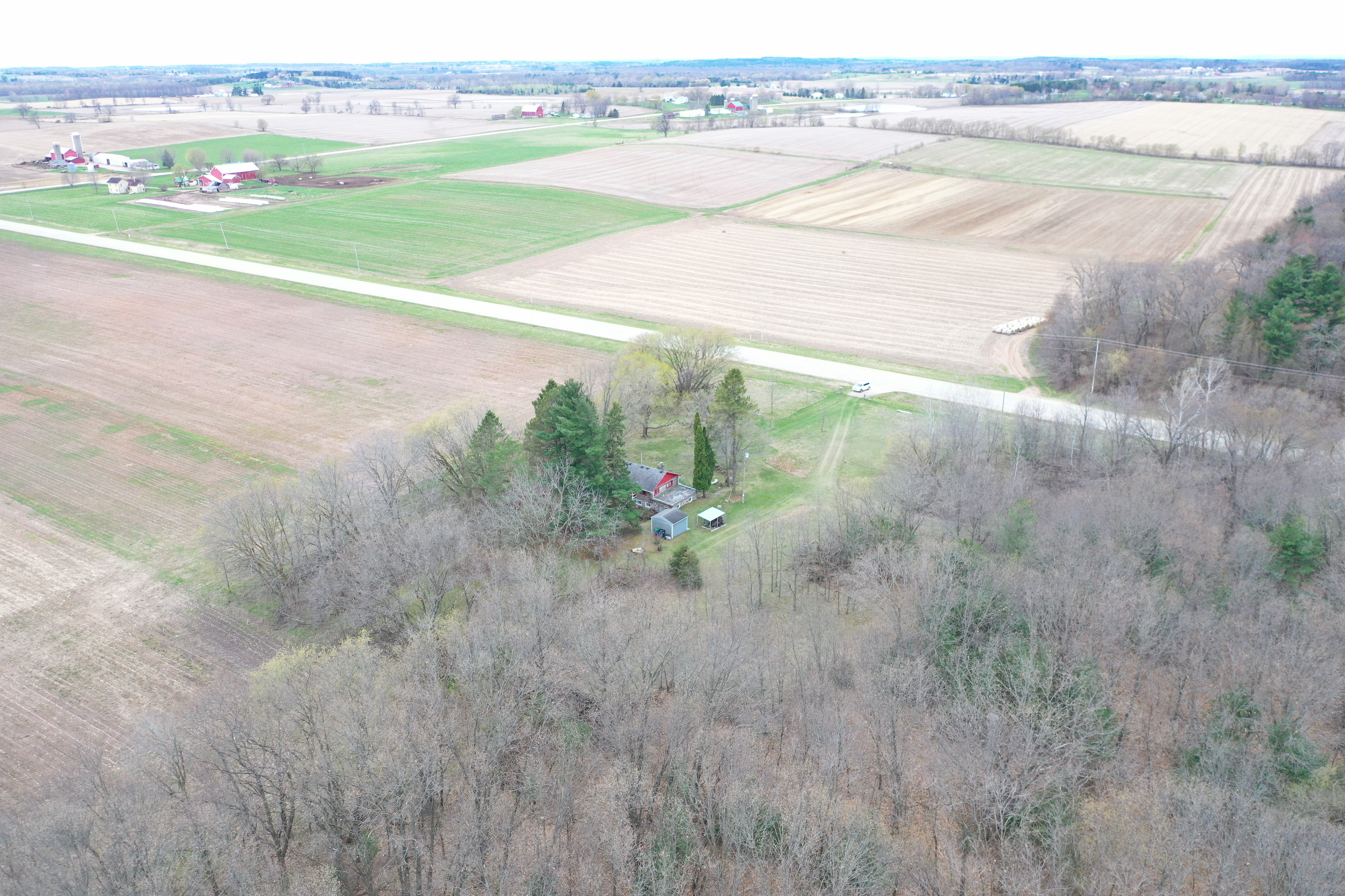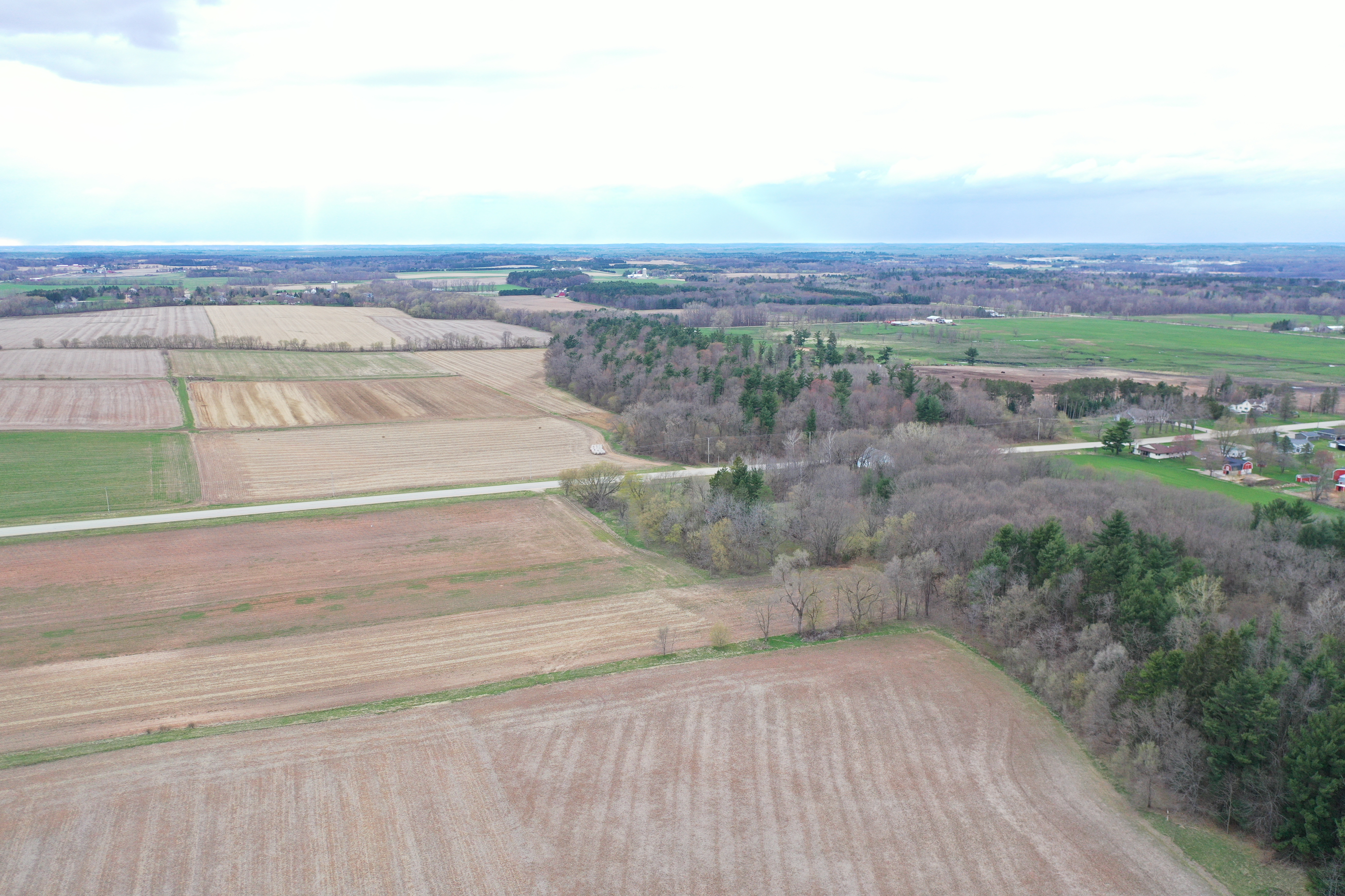 The sprawling acreage features a mix of productive timber, oak, maple, and white pine being the most common. This creates a diverse and beautiful landscape that is home to a healthy herd of deer, turkey, and other wildlife. From a deer hunting perspective, the property offers the perfect funnel of rolling timber for animals to travel east and west on a regular basis. Neighboring ag fields provide abundant food sources for all the local wildlife. There are just under 30 acres on the west side of the road, with 8 plus being tillable, and approximately 13 mainly wooded acres on the east side with a cabin and old schoolhouse. There are no known wetlands on this property. The acreage is mostly wooded with approximately 8-9 ac of productive tillable ground that would be excellent for food plots, income via cash rent to a local farmer, or turnkey build site possibilities. The county road dividing the property and tax parcels naturally opens a lot of options for a future owner for hunting, building, or developing the acreage.
