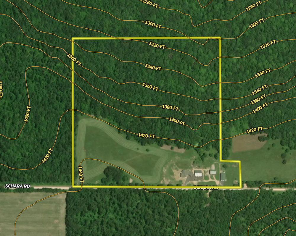 The land highlights everything you could imagine in the driftless region of the state. Known for quality bucks, this estate lands directly in the middle of prime Wisconsin hunting country. Over 140 feet of elevation change occurs from east to west as you move across the property. Alongside the home is almost 8 acres of open land. Some of this has already been fenced for animals, while the rest is ready for hay, or a comprehensive foot plot regime. Heading back into the woods, which consists of a good deal of maple and oak, you will find a completely different atmosphere. Once you enter the forest, the massive rock outcroppings remind you that you’re in southern Wisconsin. The ATV/UTV trail takes you down a decent slope at first (this offers a great variety of locations for bow hunting) into a more gradually sloped portion of the property. The wooded land continues this even slope as you walk through the rest of the property. The owner has already set up several shooting lanes for better visibility, giving you multiple options. The Nature Conservancy owns over 1000 acres on the east side of Schara Road, creating the perfect Quality Deer Management Area right in your backyard. By diversifying your food plot(s), you can increase deer traffic on your property and potentially pull some large deer out of the conservancy where they are left relatively untouched.