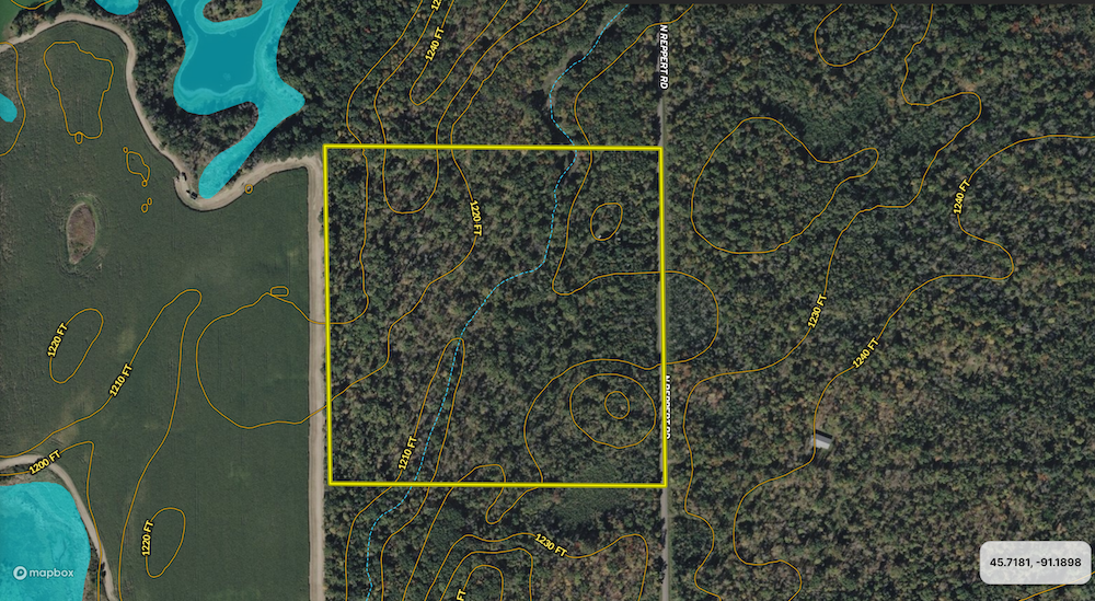 The property is located adjacent to Ag fields and nearby ponds just East of the famed Chippewa River. This nicely timbered land includes mature Oak and Maple, as well as plenty of heavy cover bedding habitat. The Deer numbers in this area are very strong, and the Deer are funneled directly through the parcel. The area also provides great Ruffed Grouse & Turkey hunting. N. Reppert Road is paved and provides excellent access to the property. Taxes are low and fiber optic has been run along the roadway. This parcel is certainly a buildable piece of land, and would also make a great cabin or home location in the Northwoods. For more information please contact Whitetail Properties Land Specialist Mike Noskoviak