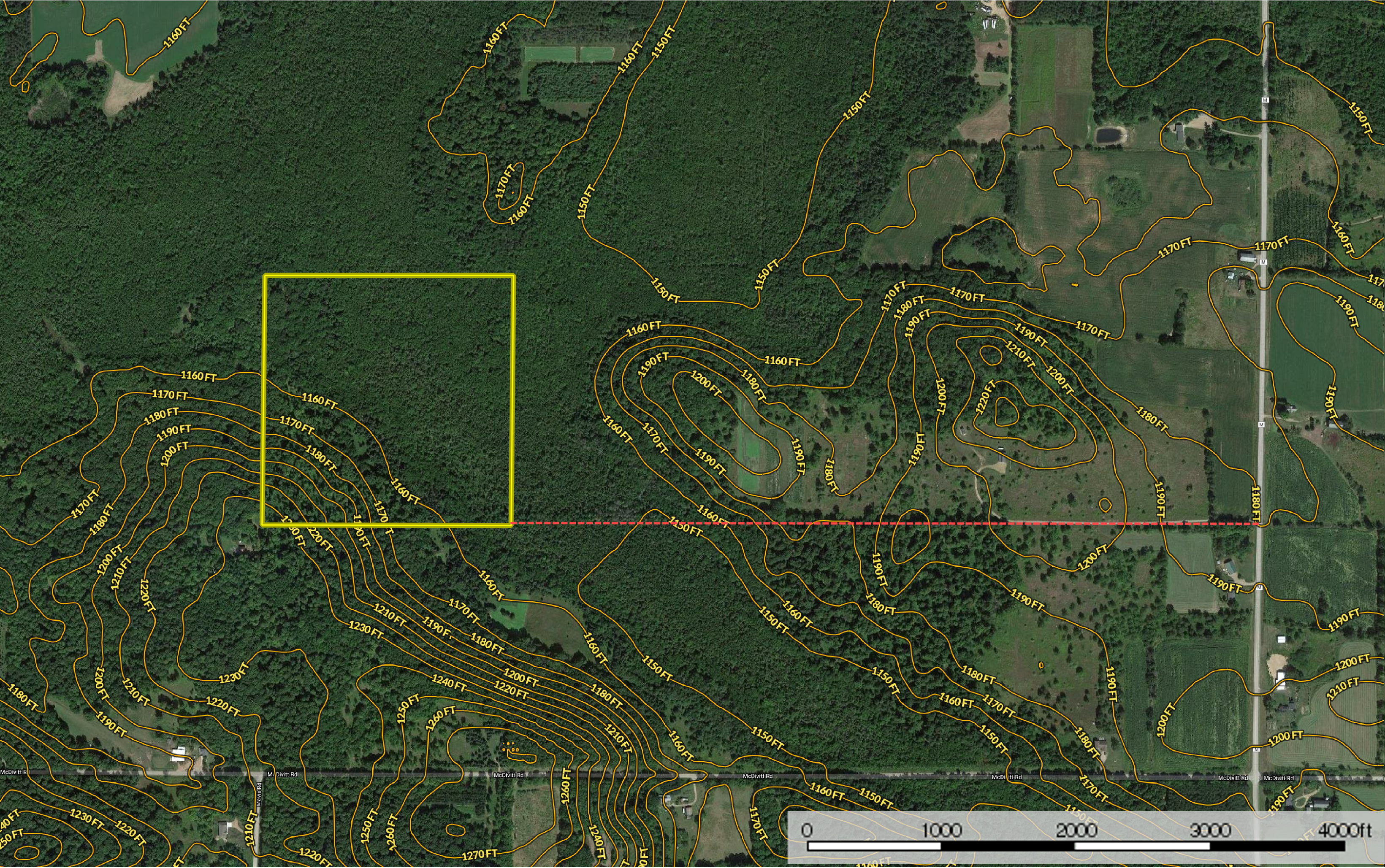 - Hardwood ridge with significant elevation change
