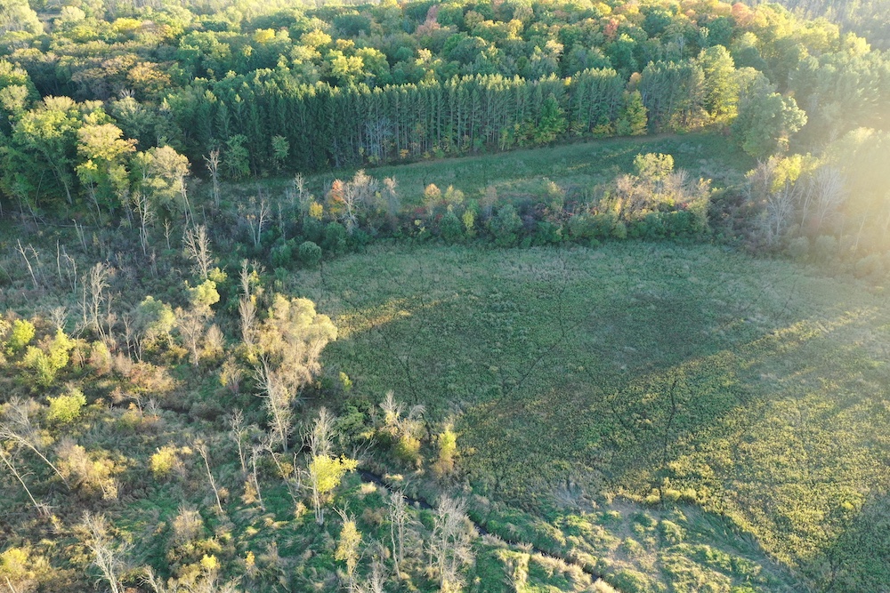 The open fields are planted in native grasses, creating a picturesque and low-maintenance landscape that also provides excellent habitat for deer and turkeys. Multiple build site options throughout the property allow for endless possibilities — whether you envision a secluded cabin tucked among the trees, a stunning dream home overlooking the creek, or a weekend retreat with sweeping views of the hardwood ridge.