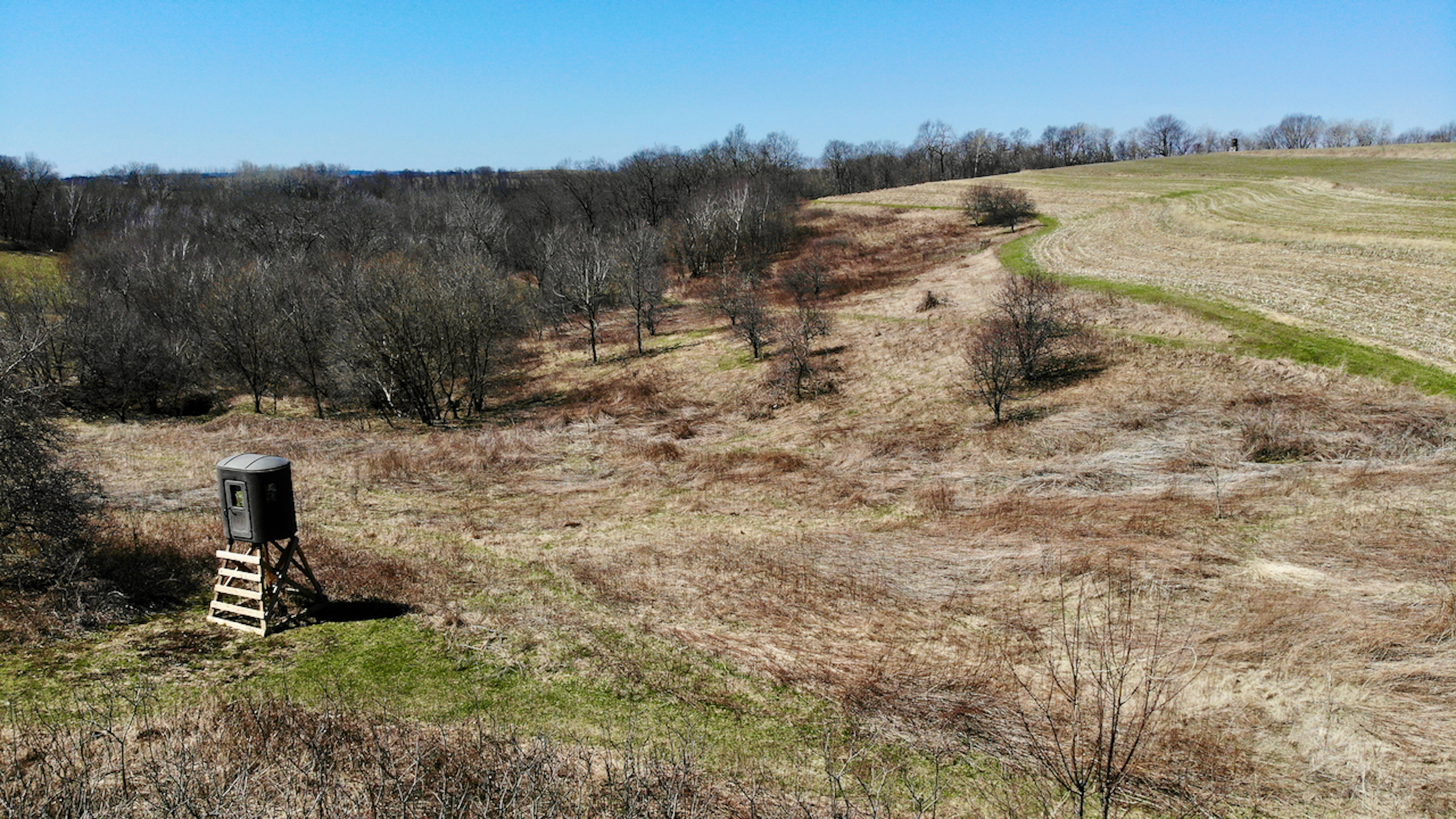 This is your chance to acquire a piece of land and instantly enjoy the benefits of blood, sweat, and tears poured into this property. Countless hours have been put into this property to allow the next buyers to come in and start having excellent hunting opportunities. Multiple Banks Blinds have been strategically situated over natural funnels and food sources. Trails have been cut in and cleared throughout the property providing you with great access to and from your stands. There are approximately 16 acres of tillable land currently being used for hay production. In return for renting out the fields to the neighbor, the seller can access part of the property through the neighbor’s parcel. While it is not guaranteed, a similar deal could be made with the new buyer. Much of the timber consists of mature oak, walnut, hickory, and maple trees. Several areas within the timber have thick undergrowth offering quality bedding and cover for wildlife. The timber is enrolled in Closed MFL until 2027. The deer and turkey hunting on this property is exceptional, and the trail camera photos speak for themselves. One walk through the property, and you will see the highways created by deer moving around the property.