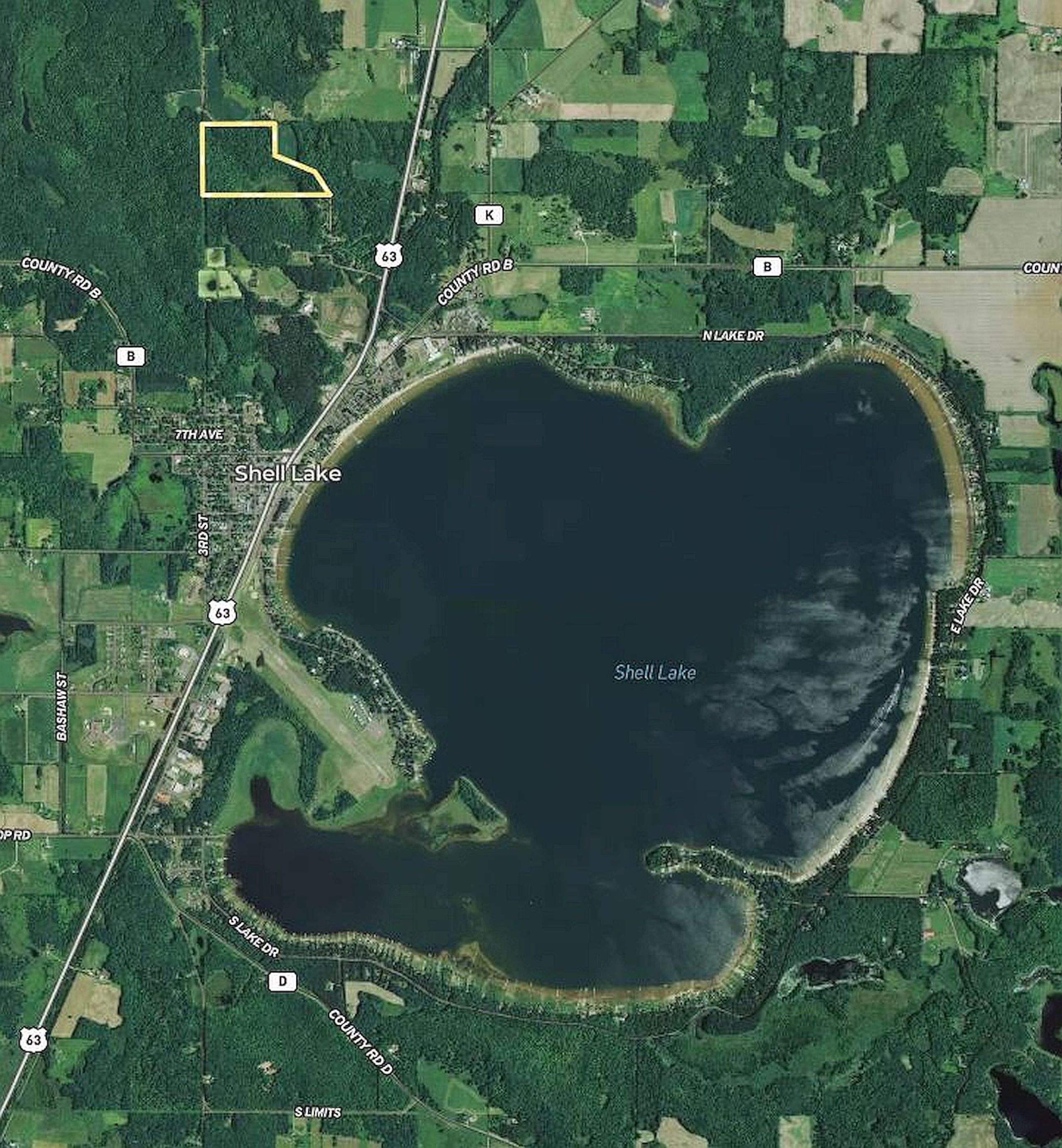 - About 1 mile northwest of Shell Lake, about 95 miles from the Twin Cities, about 80 miles from Duluth