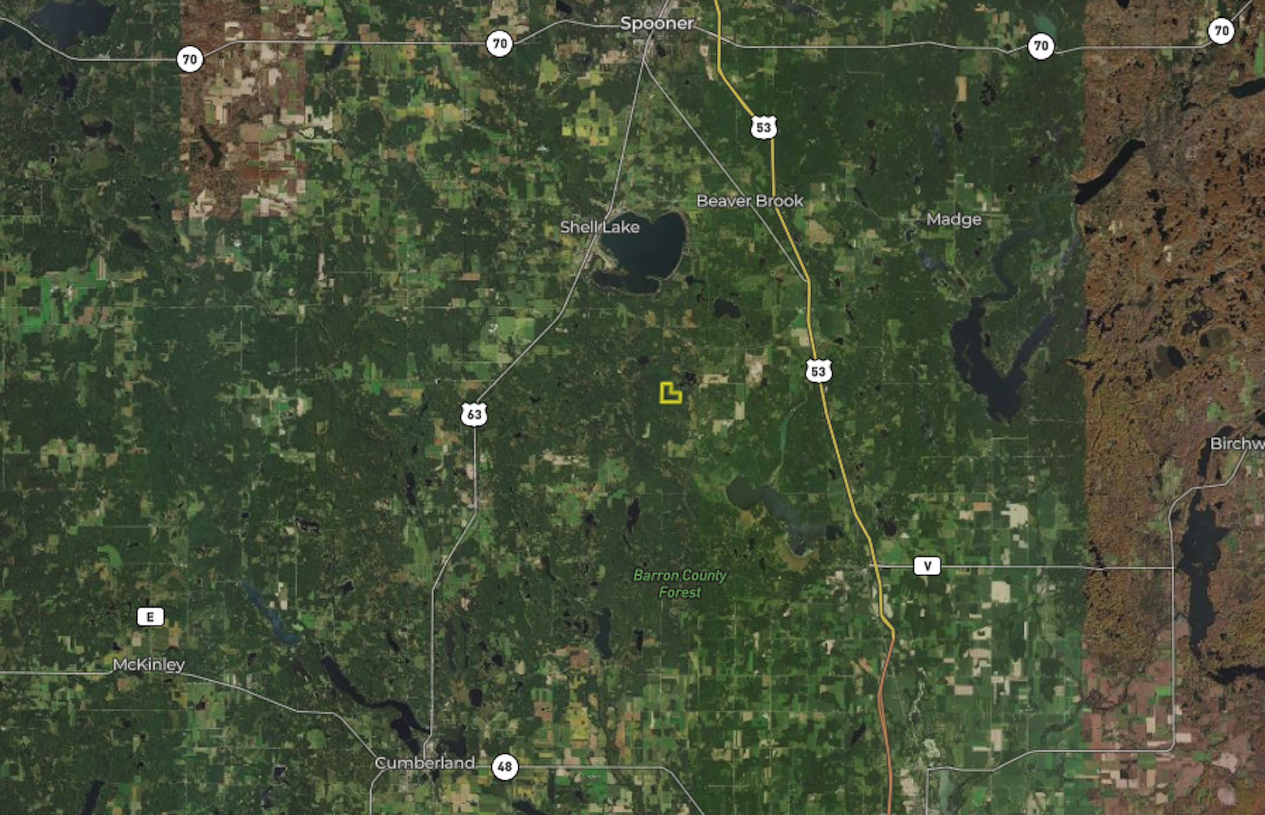 This property borders close to 10,000 acres of Washburn County Forest Land. This is a beautiful property with rolling terrain. A mix of hardwoods, softwoods and pines make up this ground. Visual of deer while walking through the property. There’s a lot of cover for the deer to bed. There’s a small scenic pond on the property. As you can see from the interactive map, the trail system goes all through the property. The southeast corner was left alone as a spot for a wildlife sanctuary. Deep into the property is a large cleared area that would make a great food plot. There’s a long easement that gets you back to this property and gets you off the beaten path. Call today for your private showing!
