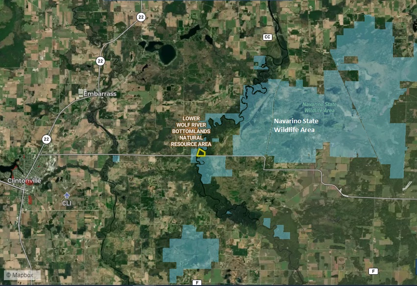 Acreage with 2000 ft+/- frontage on the Wolf River close to the Navarino State Wildlife Area. Enjoy great fishing, hunting, camping and recreation with your own private spot on the renowned Wolf River. Secluded campsite nestled along the water’s edge with power on site. The land is predominantly river bottom hardwoods with many oaks. Navarino State Wildlife Area is just down the road for additional hunting possibilities. A public boat launch is also nearby. Great access with frontage on State Highway 156 as well as private road Pearl Flats Ln. The land is not buildable. Only about 30-45 minutes from Green Bay or Appleton. Call Land Specialist Luke Gliniecki today for more details on this awesome opportunity before this one is gone!