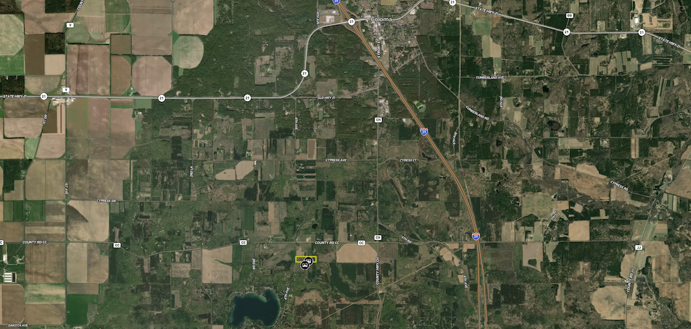 High ground and easy access off a quiet township road greet you on this conveniently located parcel just a few minutes from Coloma and I-39. Build your home or use the existing camper and amish built storage shed/cabin to get you going instantly in the short term. Access to hundreds of acres of productive public hunting land is just a stone's throw down the road. Deer and turkeys traverse this parcel regularly making a unique proposition to buy ten acres and have access to hundreds more. A camper will come with the sale and there is an amish built storage cabin on the property that is powered by solar panels. Electricity is also just down the road if someone were to build a full time residence here. Mature pine and oak trees dot the back half of the property and there is a small opening that could be an excellent food plot to pull deer off of the adjacent and sprawling pubic land. Local zoning recognizes the camper/shed set up as a seasonal camping arrangement. There is an additional ten acres of vacant land available that is adjacent to this property to the south. Please call list agent Dave Schutt with questions about the property or to schedule your private showing.