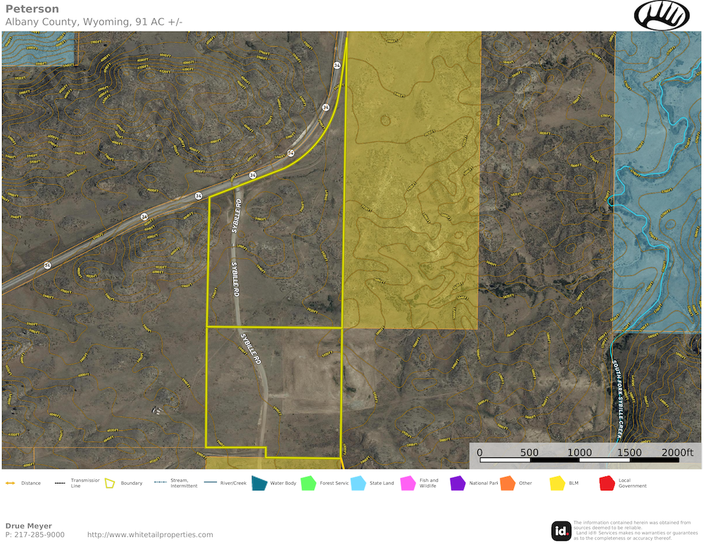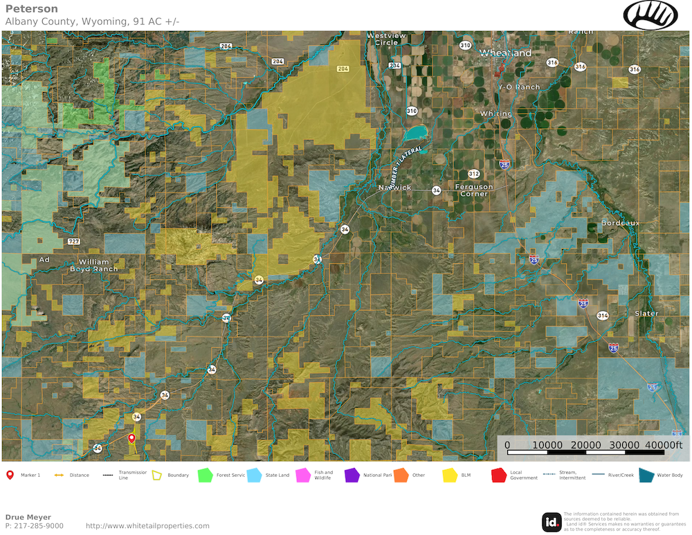 This 90-plus-acre property is located in Sybille Canyon, outside Wheatland, Albany County, Wyoming. The surrounding area is known for its open landscape, rolling hills, and the presence of the Laramie Mountains, which frame much of the regional scenery. The property offers a combination of accessible terrain, varied elevation changes, and direct adjacency to public land, making it suitable for a range of residential, recreational, and land use considerations.